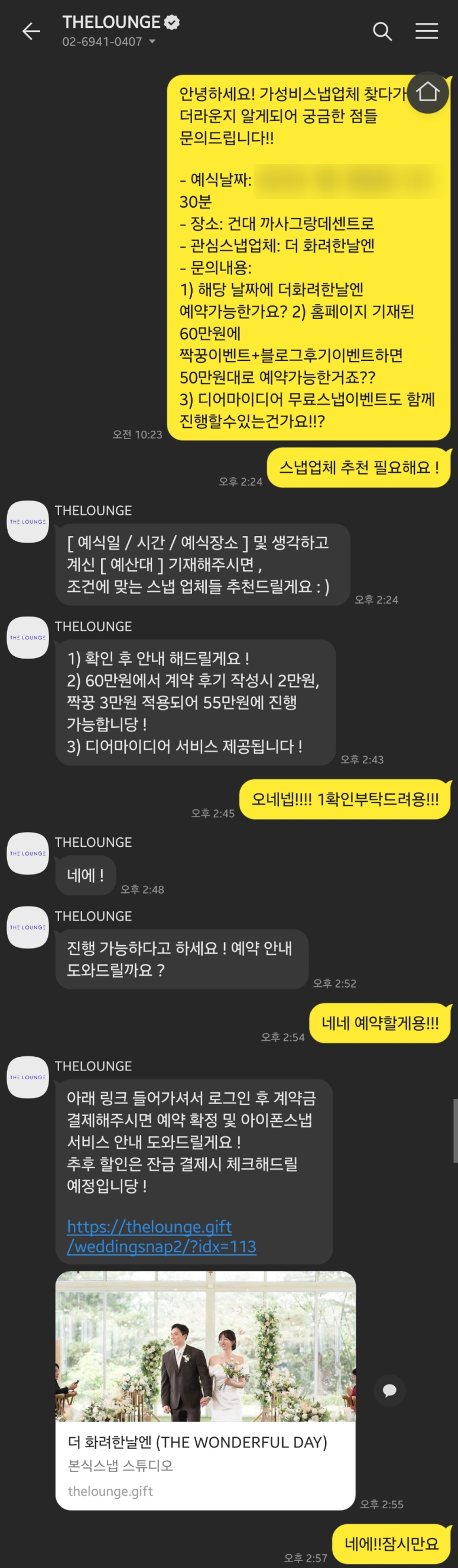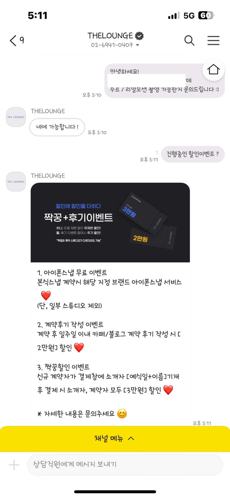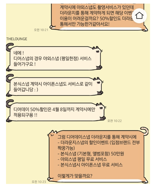 저는 1인촬영에 아이폰스냅을 생각하고 있었기 때문에 너무 좋은 이벤트라 바로 계약했습니다.