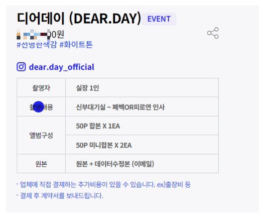 * 참고로 스냅업체 계약시에 계약서 잘 읽어보세요