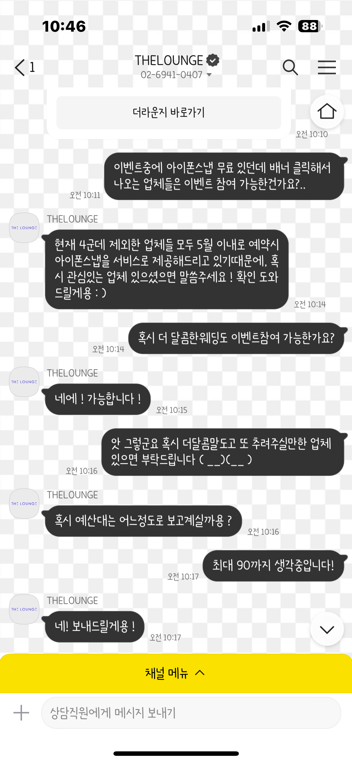 더 라운지 알기전엔 업체마다 상담문의 남겨야하고.. 답변 기다려야하고...얼마나 시간 아깝던지