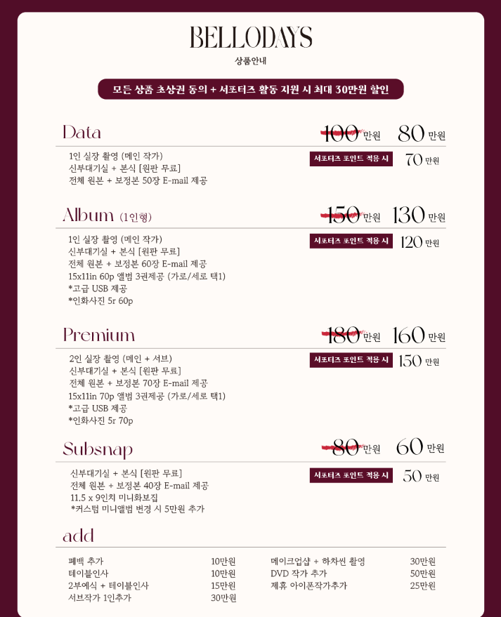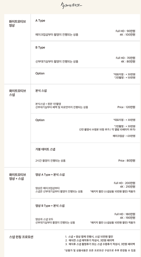 * 더화려한 (1인 촬영 기본. 서브작가 1인 추가 가능. 본식 스냅만 진행)