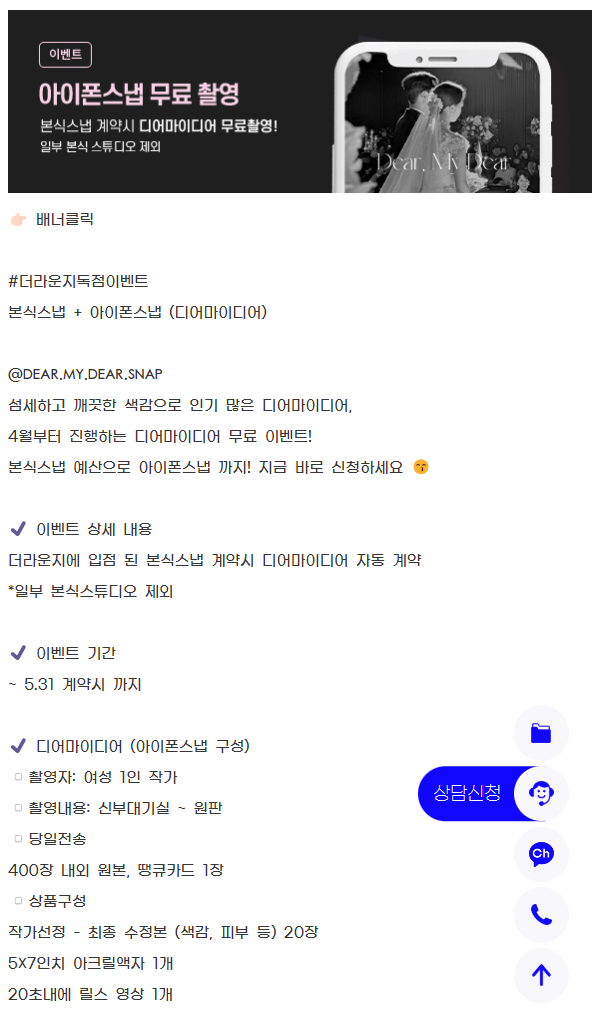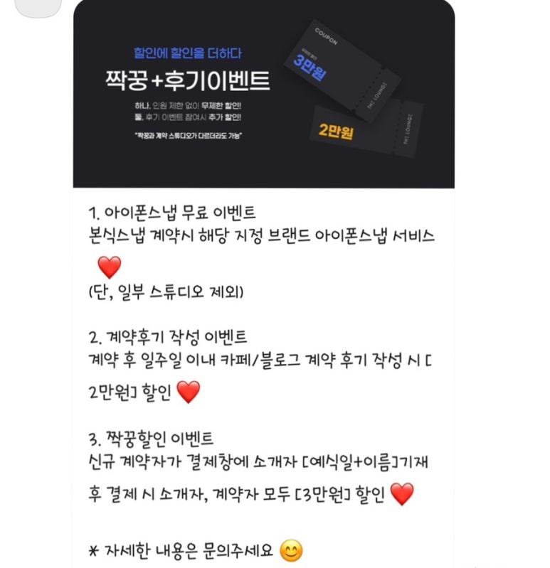 게다가 스냅업체 자체 이벤트로 24년도 계약자 대상