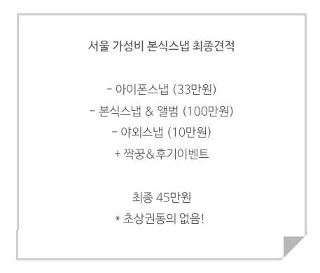 스냅업체들 가격 투명~하게 공개되어 있고