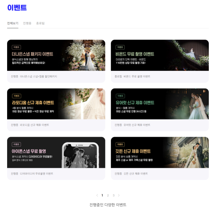 회원가입만 하셔도 서울/인천/경기 기준 50개정도 되는 본식스냅 업체의 가격들을 한 번에 확인 가능하다는 점 입니다.